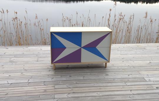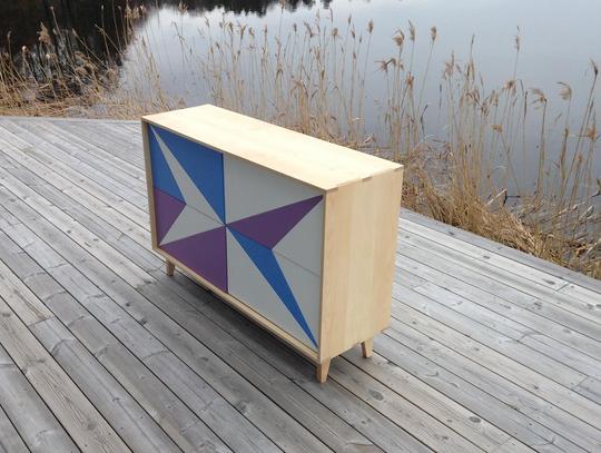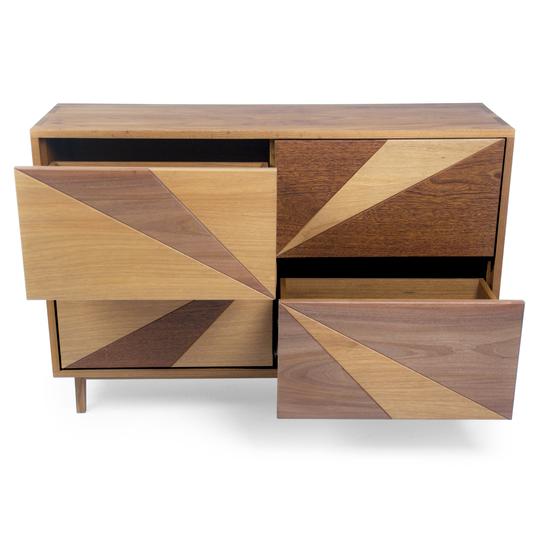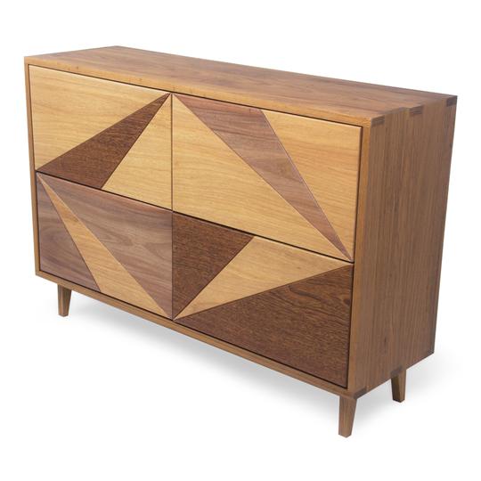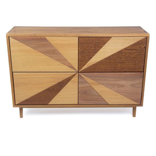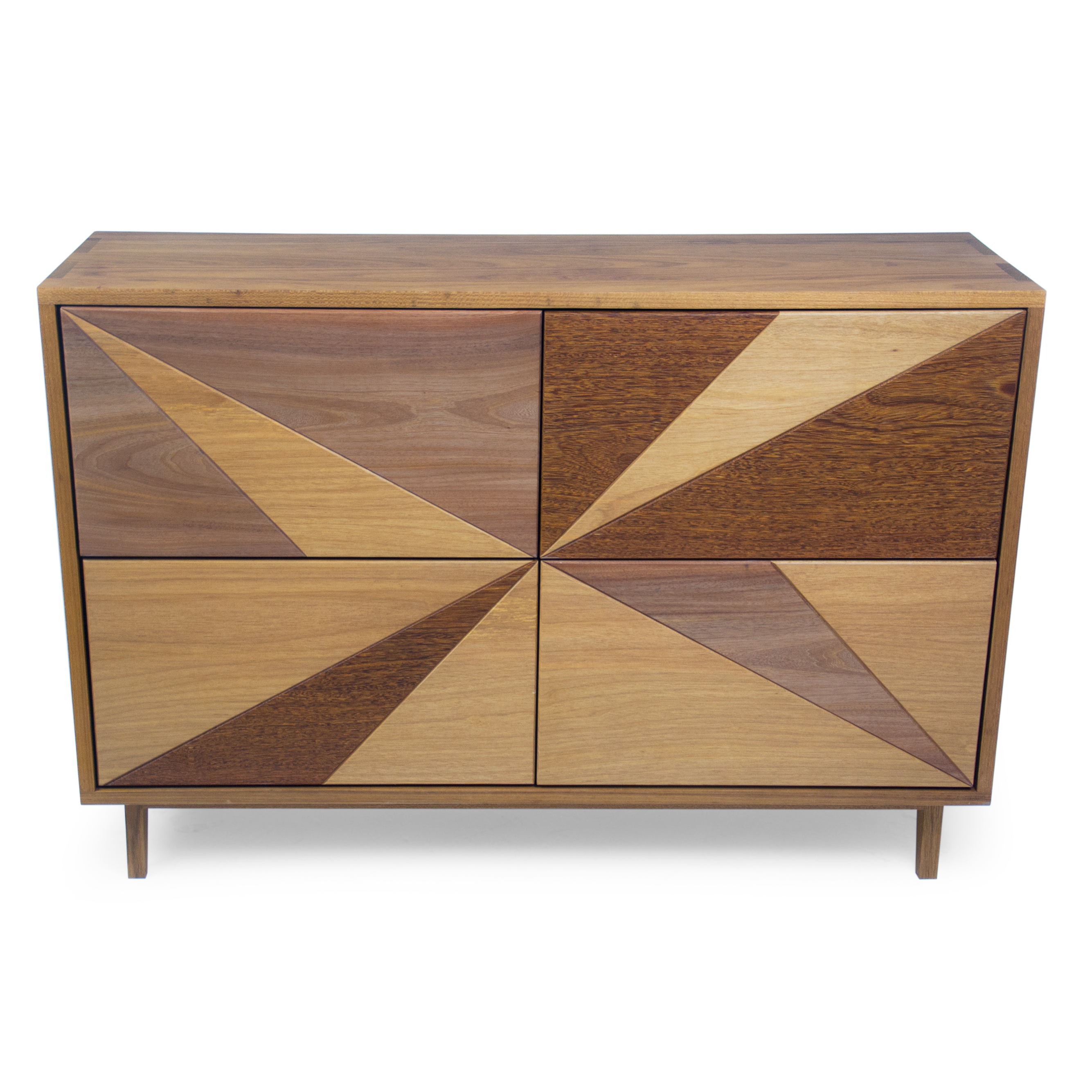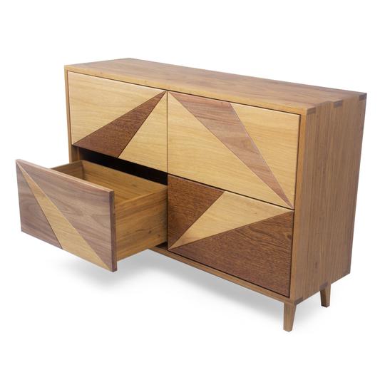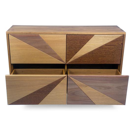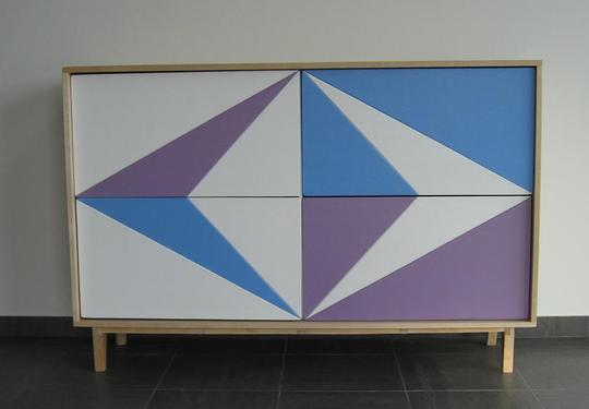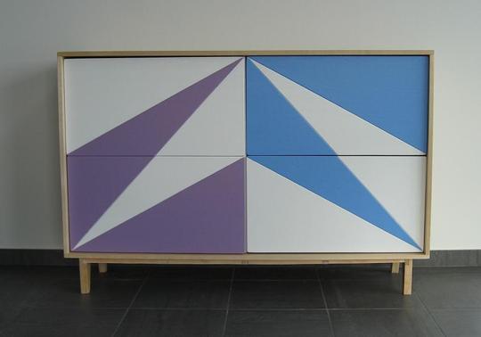 Its distinctive feature lies in the graphic expression created by the composition of its four drawers. The drawers can be rearranged in different positions, allowing for 24 possible geometric configurations.